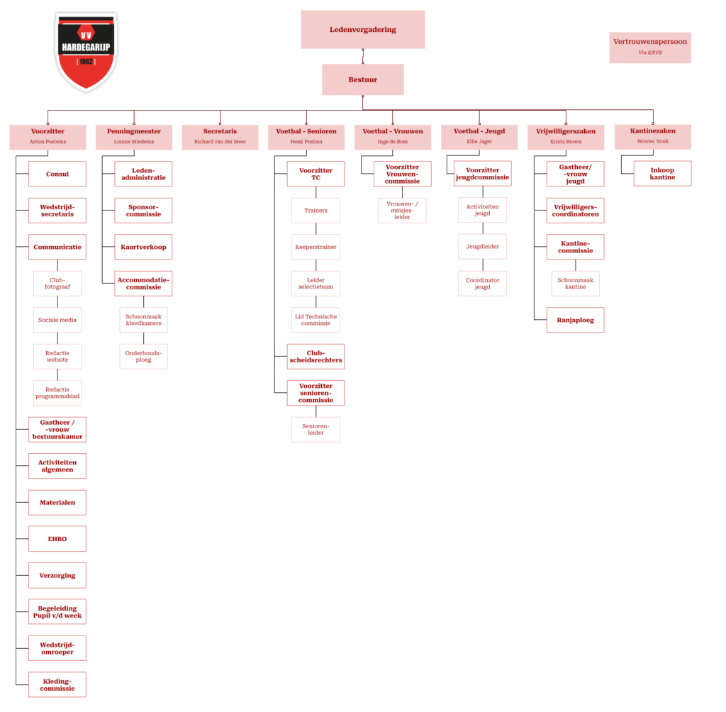Het Algemeen Bestuur van vv Hardegarijp bestaat uit zeven personen. De voorzitter, de secretaris en de penningmeester vormen het Dagelijks Bestuur.